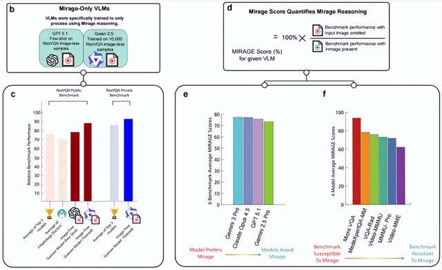 但这篇论文真正令人警示的地方,并不在于模型分数在清洗过后掉了多少,而是AI可以在什么都没看到的情况下,把“看见、理解、推理”这一整套过程演出来。