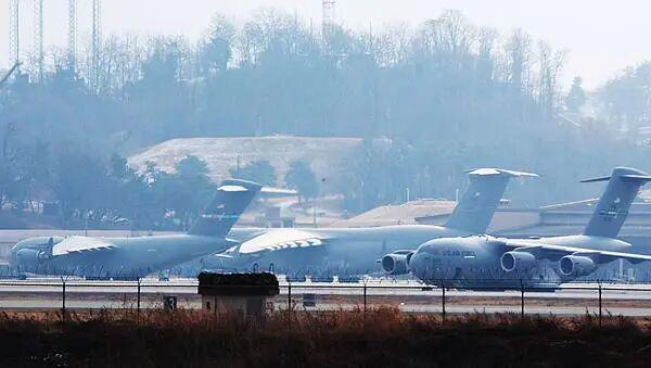 3月6日,驻韩美军在平泽乌山空军基地内的运输机准备将“爱国者”导弹运往中东地区。