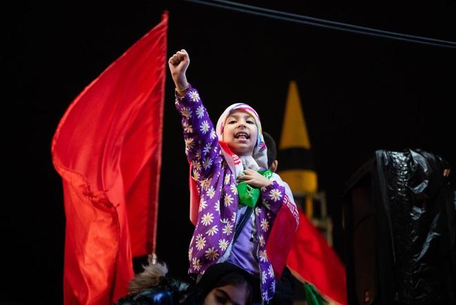 在德黑兰恩格赫拉布广场举行的集会活动中,一名儿童举起拳头参与抗议活动。