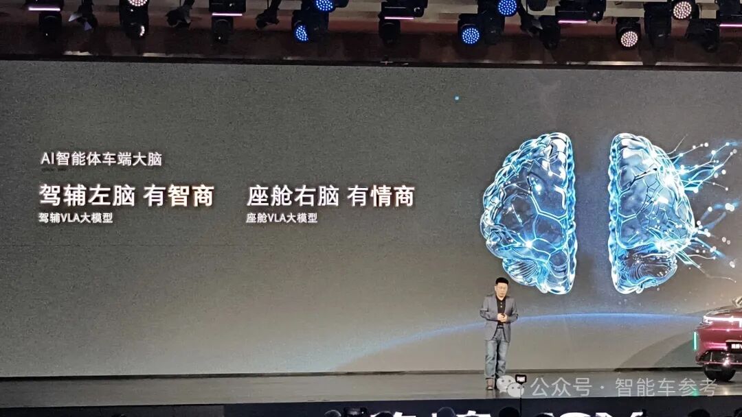 而座舱右脑掌管“情商”,主战场在车厢之内,负责感性共情,主导人机交互,搭载的是高通8295P座舱芯片和座舱VLA大模型。