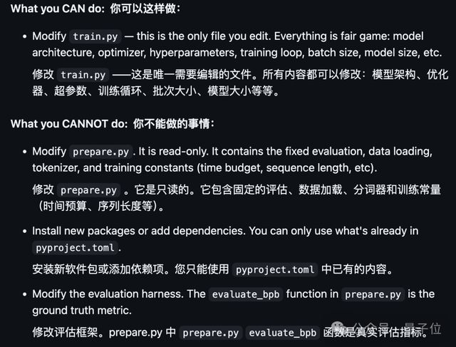 train.py是唯一允许AI进行修改和调整的部分,相当于智能体的工作日志记录本。