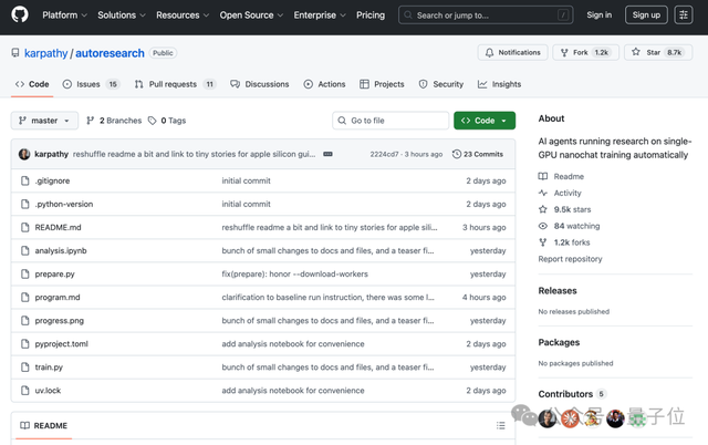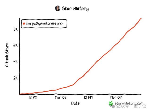 自发布以来不到两天的时间内,autoresearch已获得了超过9.5k的星标关注。