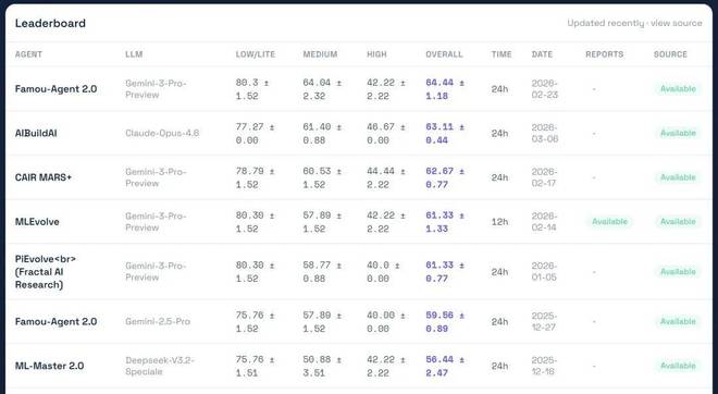 去年十月,“伐谋”团队首次向OpenAI主导设立的MLE-Bench提交成绩,以43.56分获得了当时的最佳记录。在此之前,该榜单参与者寥寥无几。“伐谋”的成功吸引多家顶尖团队加入竞争。