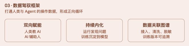 数据驾驭层则打通了人类操作数据与Agent生成的数据之间的连接。