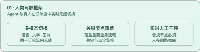 人类驾驭层支持语音、文字和图像等多模态交互,并强制要求在关键业务节点进行人工干预,以确保信息交接的完整性达到百分之百。