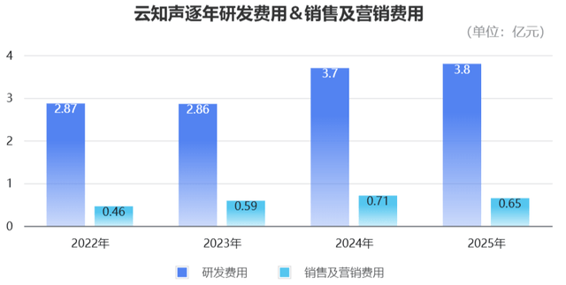 2025年,云知声的研发费用为3.8亿元,同比增长2.9%,占经调整三费的75%,研发仍是公司绝对的投入重心。