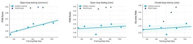 在日常驾驶情况下,随着预训练数据集的扩大,系统表现确实会有所改善;但在处理长尾事件时效果有限,因为这些情况在现实世界中本身就极其罕见。