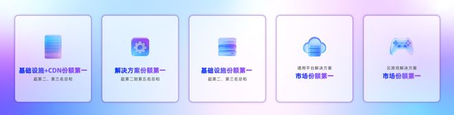 在此次报告中,阿里云在多个领域均取得了绝对优势:基础设施+CDN份额第一、解决方案份额第一 、基础设施份额第一、通用平台解决方案份额第一及云游戏解决方案份额第一。其中,基础设施+CDN份额和基础设施份额分别超过了第二名与第三名的总和;而解决方案市场份额更是以42%的比例超越了其他所有竞争对手。