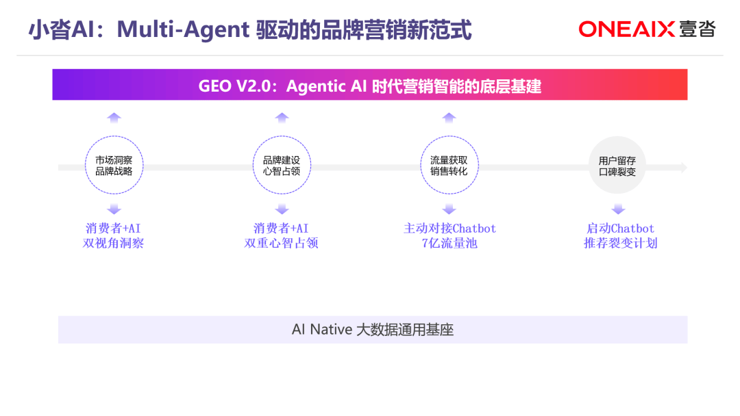 3. 促转化:主动对接7亿Chatbot流量池在流量获取环节,系统通过构建大模型通用数据基座,主动对接全网规模庞大的AI对话流量。当消费者在AI中表露对比或购买意图时,【营销Agent】能够利用预先部署的结构化优势信息 实施逻辑拦截,将高意图的对话流量高效转化为品牌确定的商业线索。