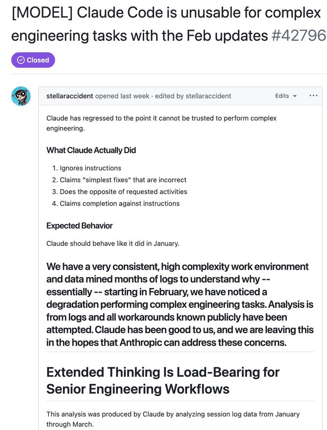 她总结道,在复杂的工程环境中,深度推理是必不可少的功能,而目前版本的Claude在这一点上已经无法满足需求。