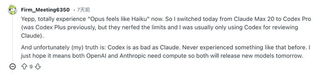 一位Reddit用户表示他已经停止订阅Claude Max 20,并转向Codex Pro,认为现在的Claude就像旧版本一样无能。