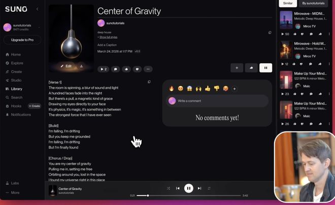 Suno V5.5 已经允许用户使用自己的声音训练模型 |图源:YouTube