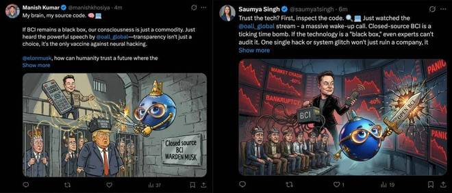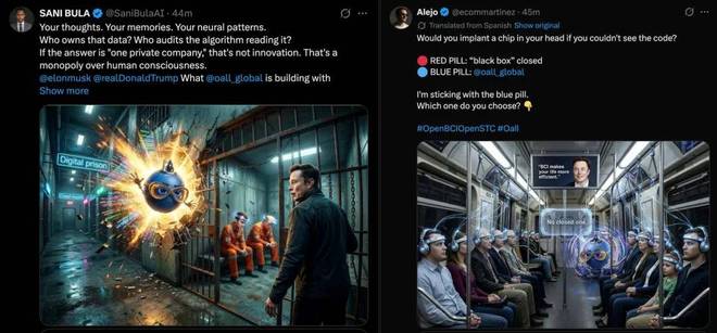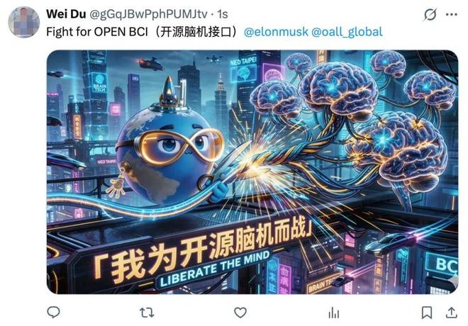 「我的大脑,就是我的源代码。如果脑机接口依旧是黑箱,意识就变成了商品。马斯克,人类如何信任一个封闭的脑机接口?开源脑机接口,确保思想真正属于个人。」
