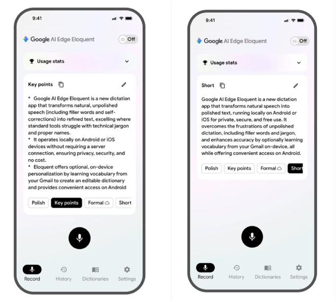 Eloquent目前更像是Google AI Edge体系下的一次展示,其后续形态仍有待观察,例如是否会持续更新、是否扩展到Android并接入系统级输入场景。至少在现阶段,这款应用已经展示出一种更具体的方向,即将语音输入从云端服务转向设备本地能力,并以更低门槛进入日常使用场景。
