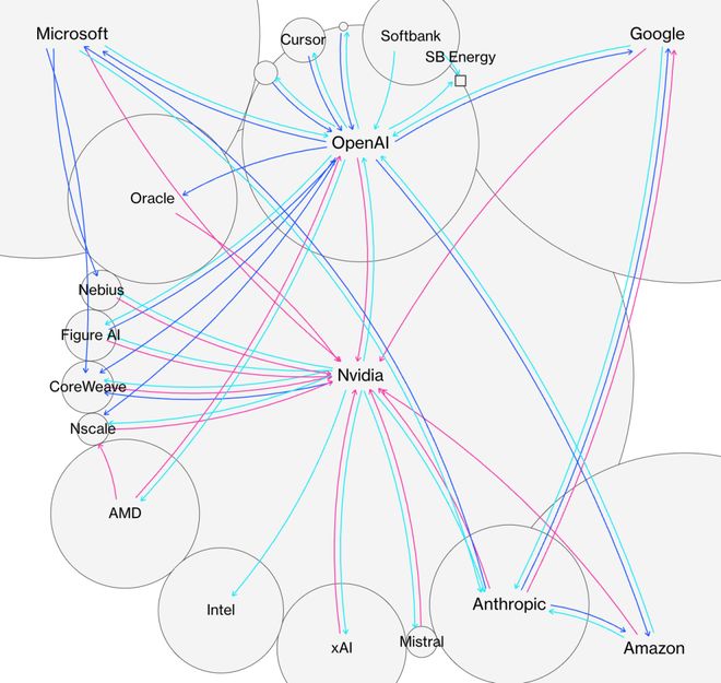 例如英伟达通过出售芯片给云服务提供商,后者再将算力租赁给AI初创企业,而这些公司又可能从原厂商处获得资金支持。