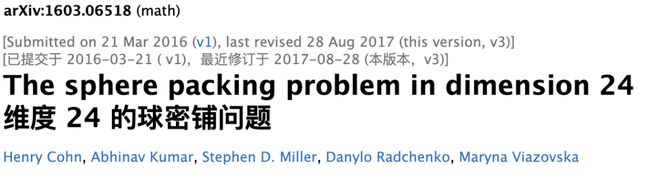 这个数学难题已有数百年历史,在大多数维度下难以得到严格的证明,但8维和24维是例外的情况。