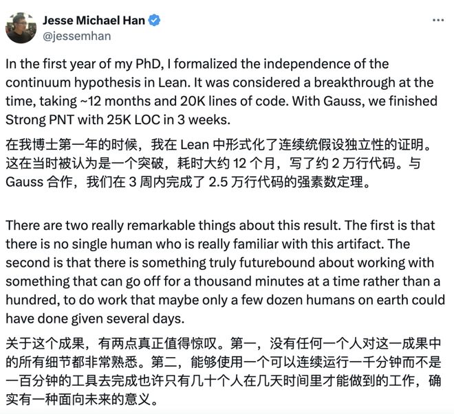 Math,Inc.首席执行官Jesse Han将这一变化比作计算机科学从早期的手动打孔纸带编程过渡到高级语言时代的飞跃。