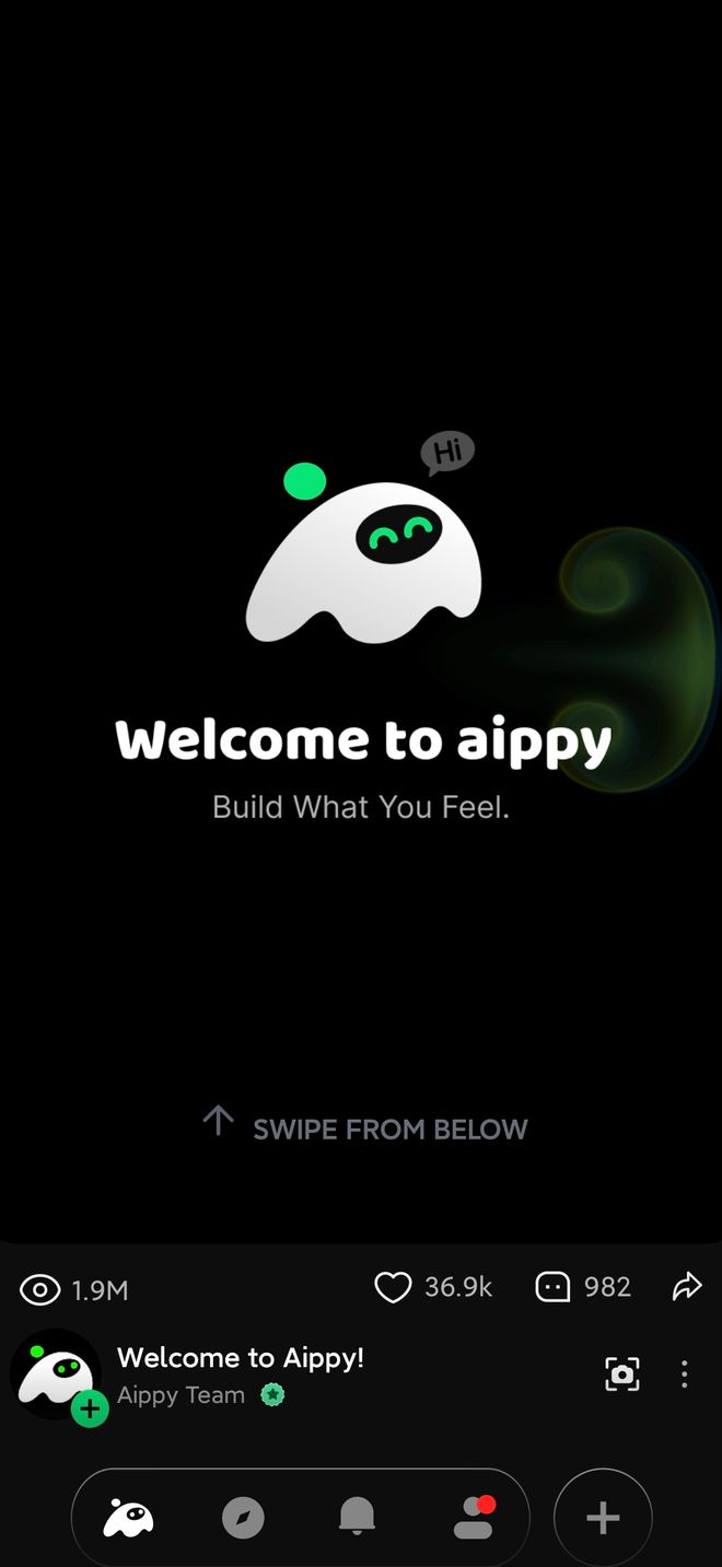 打开Aippy后,用户将看到一个类似TikTok的界面:竖屏展示、点赞、评论和分享功能应有尽有。