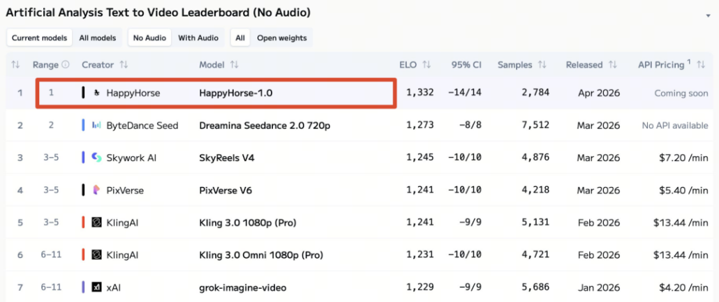 首先是 Happy Horse 的出名也很有意思。 先匿名在Arena. ai 上盲测,悄无声息地把字节的Seedance2.0和快手的可灵3.0踩在脚下,登顶文生视频和图生视频双榜 。 等着小道消息和自媒体疯狂传, 然后才不紧不慢地认 , 着实狠狠地吸了一波眼球。
