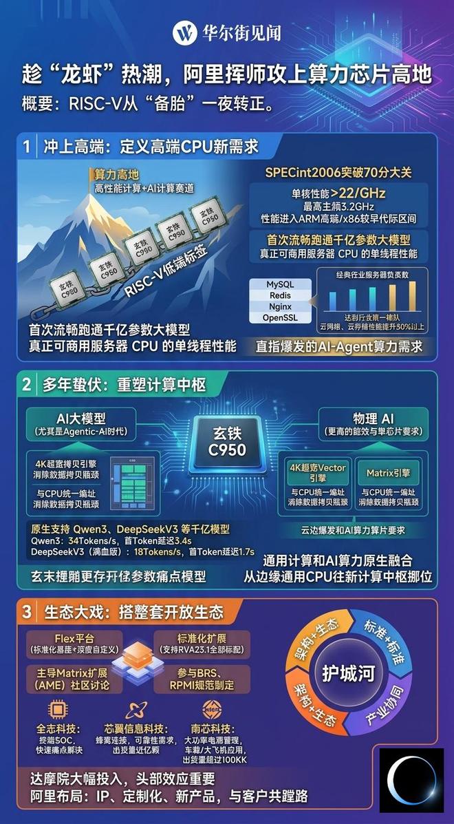 在本次发布会上,孟建熠介绍了新发布的C950芯片,其在通用性能上表现出色,同时通过定制化指令集和结构优化实现了性能的进一步提升,展示了RISC-V在性能扩展上的潜力。孟建熠强调,RISC-V的开放性允许在通用性和定制化之间找到平衡,通过市场反馈不断迭代标准,使得RISC-V成为一个创新活跃的开放体系。