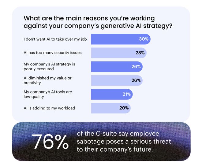 员工对抗AI的重要原因是:不想让自己的工作被替代|图源:WRITER