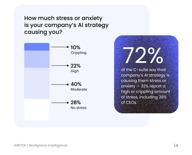72%的员工在不同程度上感受到了来自AI的压力|图源:WRITER
