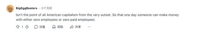 有网友指出,这正是资本家梦寐以求的目标:在不雇佣任何人类、甚至不需要支付底薪的情况下疯狂敛财。