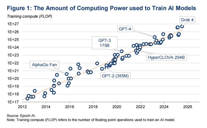 图1 训练不同模型所需的算力