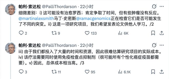 索达松教授也承认,虽然疫苗为罗西争取到了时间,但并不能完全治愈其肿瘤,且总体成本相当高。