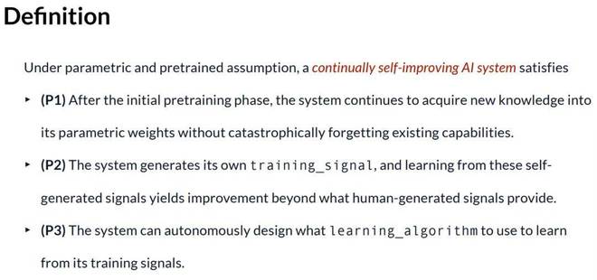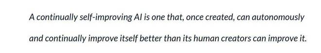 所谓持续自我改进式 AI 系统,是指一旦被创造出来,就能自主且持续地进行自我改进,并且其改进效果要优于人类创造者对它的改进。
