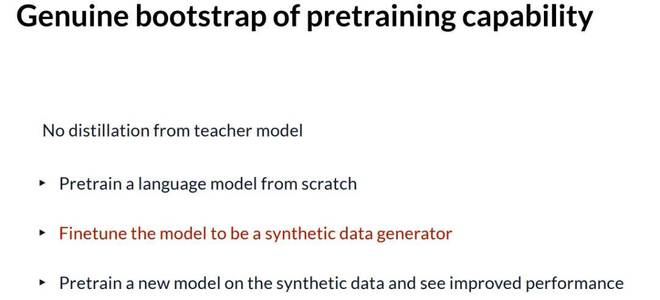 如果我们能成功验证这条流水线,我们就看到了一种对预训练能力的真正自我改进。这正是「合成引导预训练(Synthetic Bootstrap Pre-training)」。