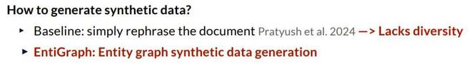 它缺乏多样性,这就是为什么我们提出了这种称为「实体图(EntiGraph)合成数据生成」的数据增强技术。