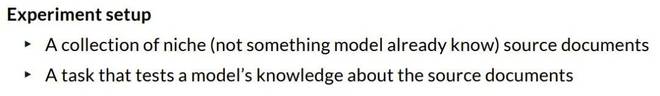 - 第一,我们需要收集一些小众领域的源文档,并且这不能是语言模型已经知道的内容。