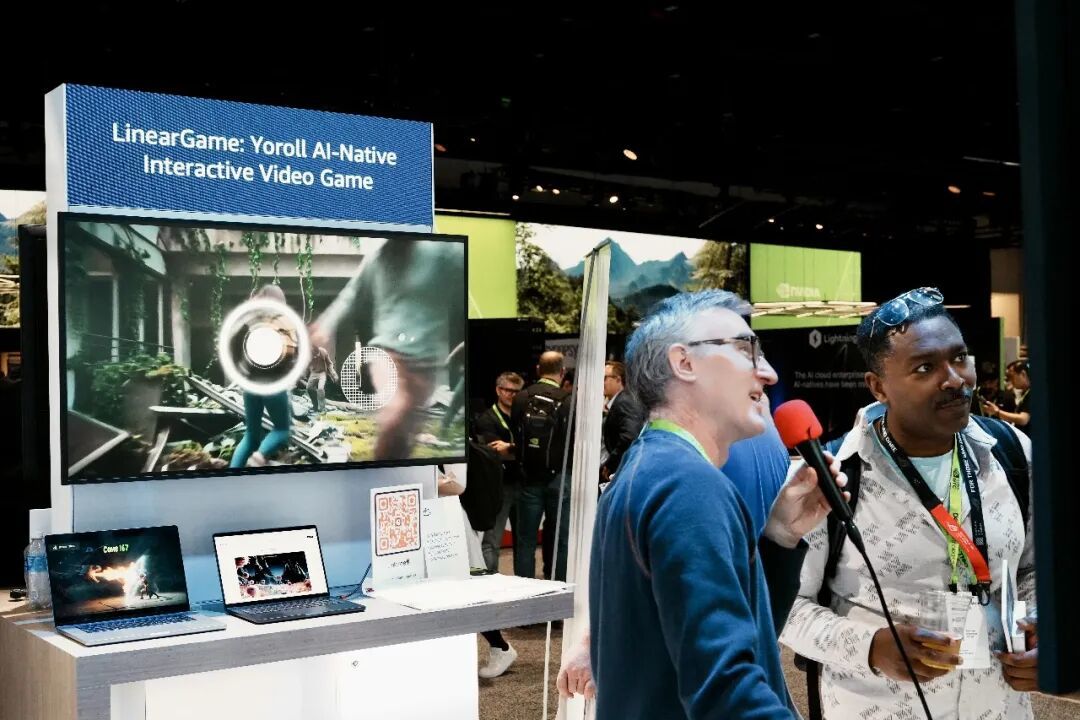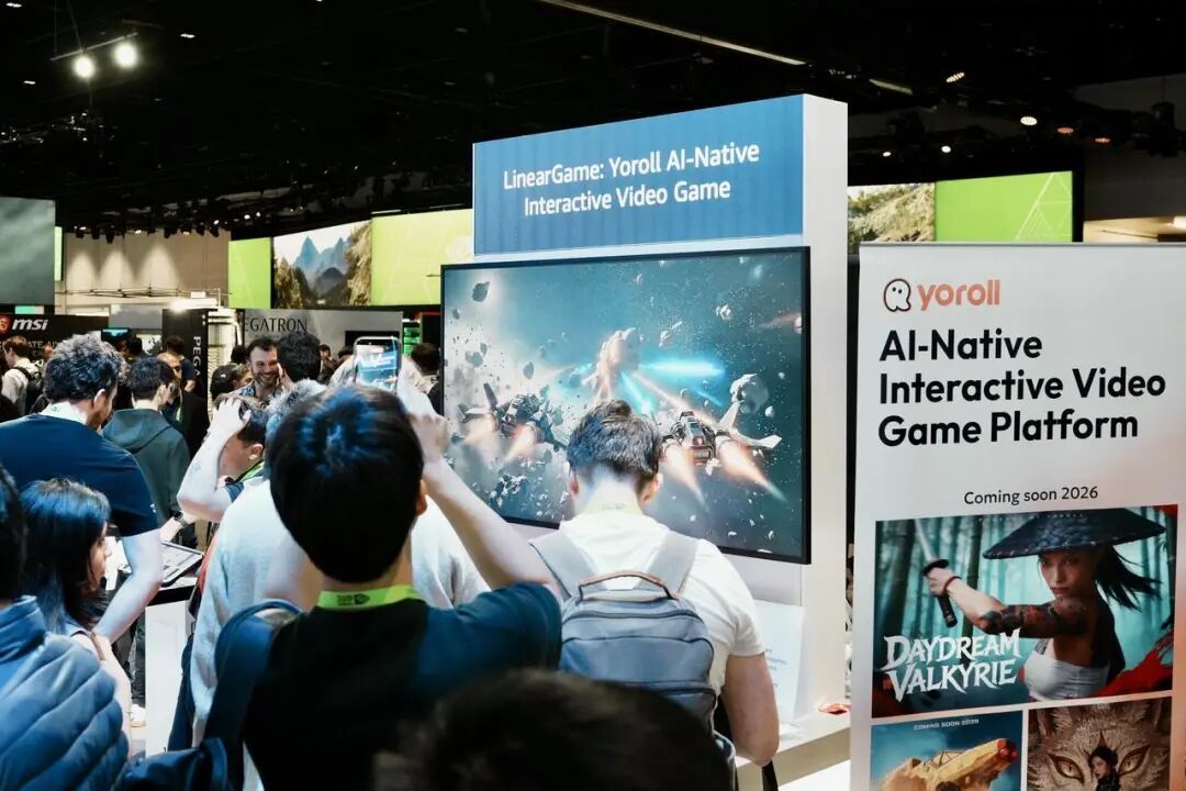 但在现场转了几圈之后,一个此前并不算最先进入视野的名字,反而几次被注意到:LinearGame,以及它旗下的AI原生互动视频游戏平台Yoroll。