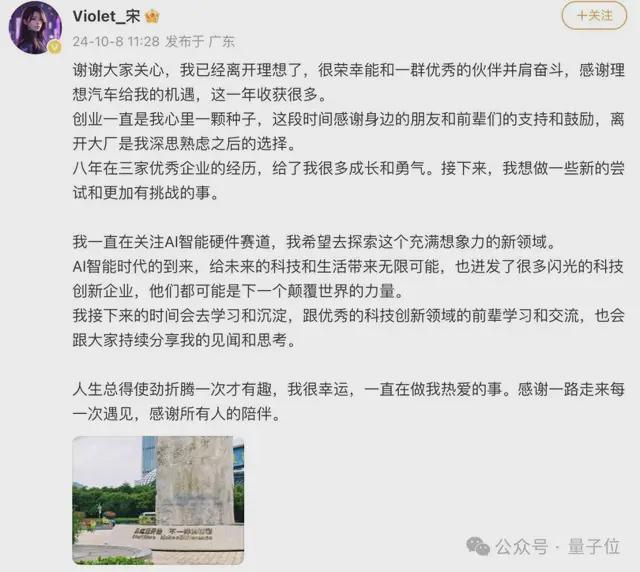 但离职官宣中,她大概也草蛇灰线,为投身AI智能硬件赛道埋下伏笔。