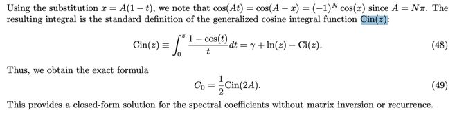 在这次人机交互中,高级模型独立发现了方法5(谱沃尔泰拉递推法)初始表述中的一个错误,并在修正后识别出方法5和方法6的等价性——这使得方法6中的无穷尾和可以被精确「折叠」成有限形式,最终得到用余弦积分表达的漂亮解析解。