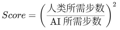 假设人类解决某个游戏需要10步,而AI用了100步,那AI的得分是多少?