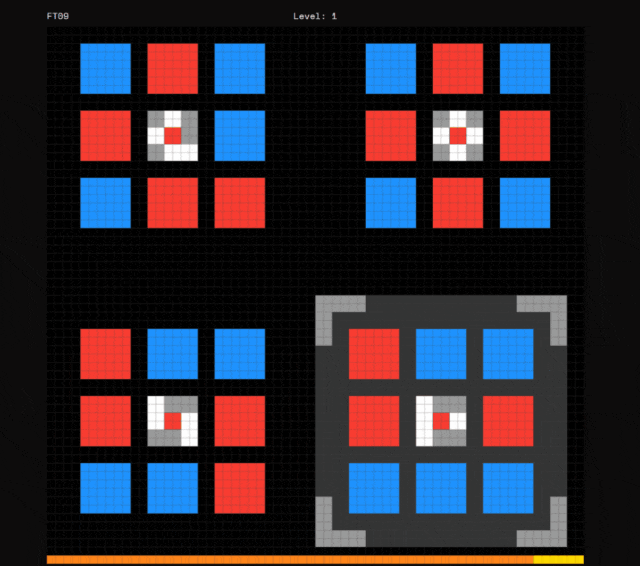 到了ARC-AGI-3,难度更是上了一个台阶:从「静态题」变成了「互动游戏」。