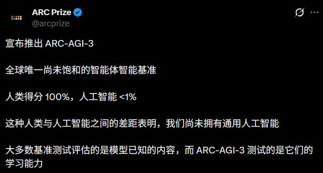 ARC-AGI-3没有任何「题海战术」可以覆盖,它考的是「怎么学习」,而这恰恰是目前AI最弱的一环。
