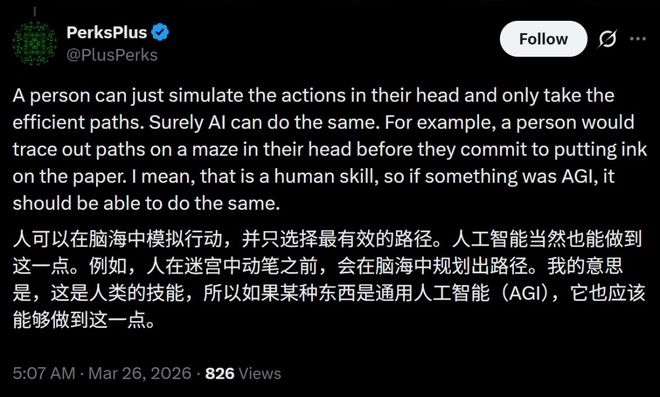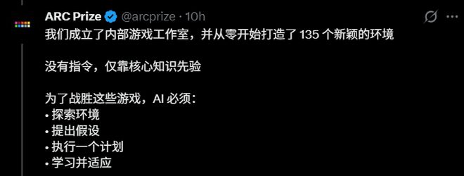 ARC团队在文档中写了一句话:「人类不会蛮力行事。他们会构建思维模型,检验想法,并迅速改进。」