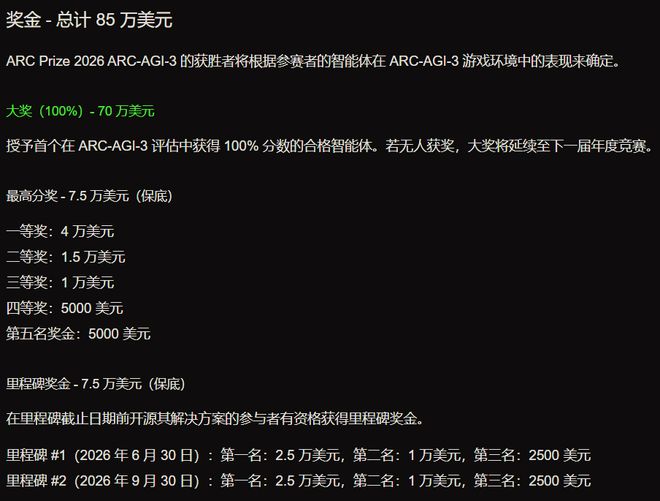 目前,这场挑战赛的奖金池高达85万美元,其中70万美元是给「满分通关者」的终极大奖。