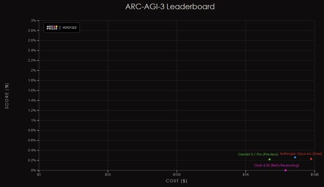 期待已久的全球唯一的未饱和智能体基准测试ARC-AGI-3一经推出,便让全球顶尖的大模型黯然失色。