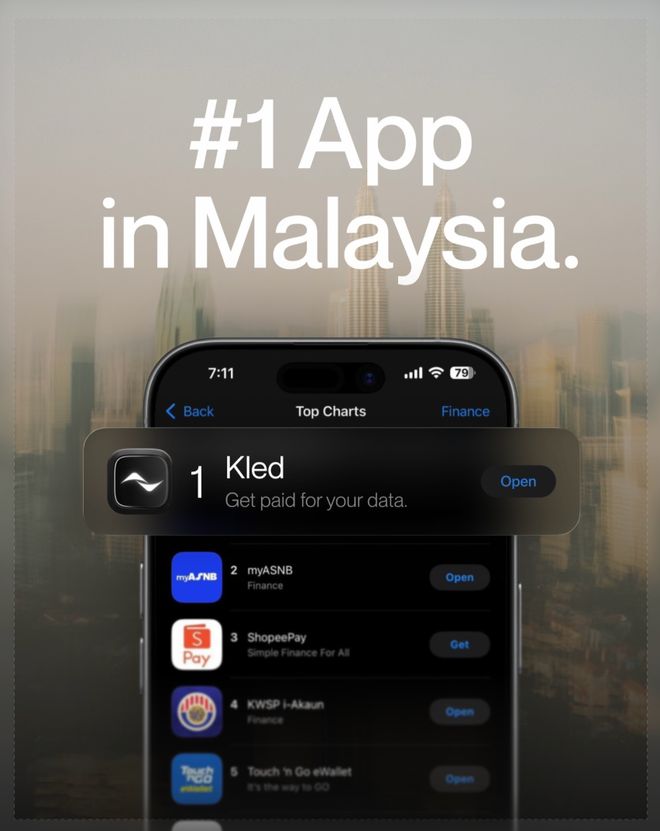 Kled AI登上马来西亚App Store金融类目榜首(图源:Kled AI)