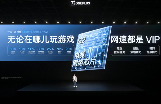 一加 15T 搭载的电竞网络芯片 G2 能根据握持姿势和信号来源,智能调度多达 12 根天线,实现行业顶尖的抗干扰与降时延能力。