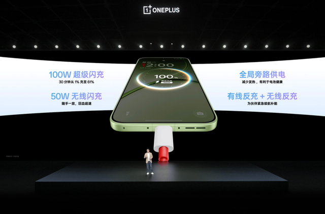 一加 15T 支持 100W 超级闪充,电量从 1% 充至 100% 仅需 54 分钟,还拥有行业旗舰标配的 50W 无线闪充,随手一放快速充电。
