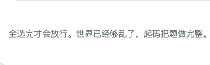 测试到最后还会提示:“全选完才会放行。世界已经够乱了,至少把题做完”,这使得多动症患者不得不回过头来完成测试。