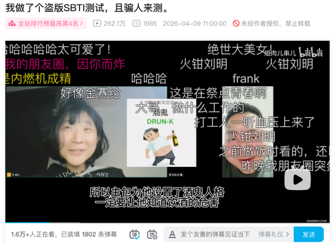SBTI由B站UP主“蛆肉儿串儿”创作,最初是为了劝朋友戒酒而设计的一个恶作剧,却一夜之间在微信、微博和小红书上走红。