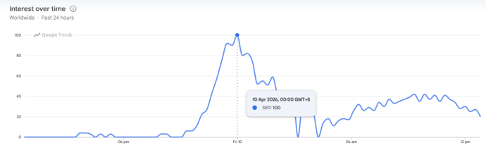 Google Trend数据显示,从4月9日晚九点二十开始至4月10日零点,短短两个小时四十分钟内搜索热度达到了顶峰。
