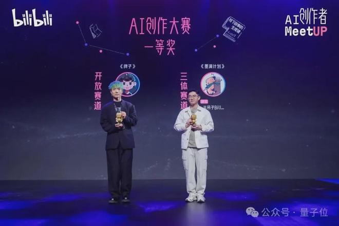 B站首届AI创作大赛一等奖得主DiDi_OK和半吊子Bill_,分别凭借其视频作品《牌子》及《墨滴计划》,赢得了十万元人民币奖金。比赛吸引了超过八千三百件参赛作品,最终七十多个项目获奖,总奖池金额超过三百万。