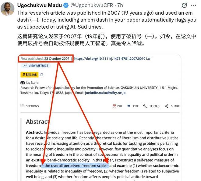 此外,破折号的使用也成为了一项常见的误判指标,这促使许多作者调整了自己的写作习惯。
